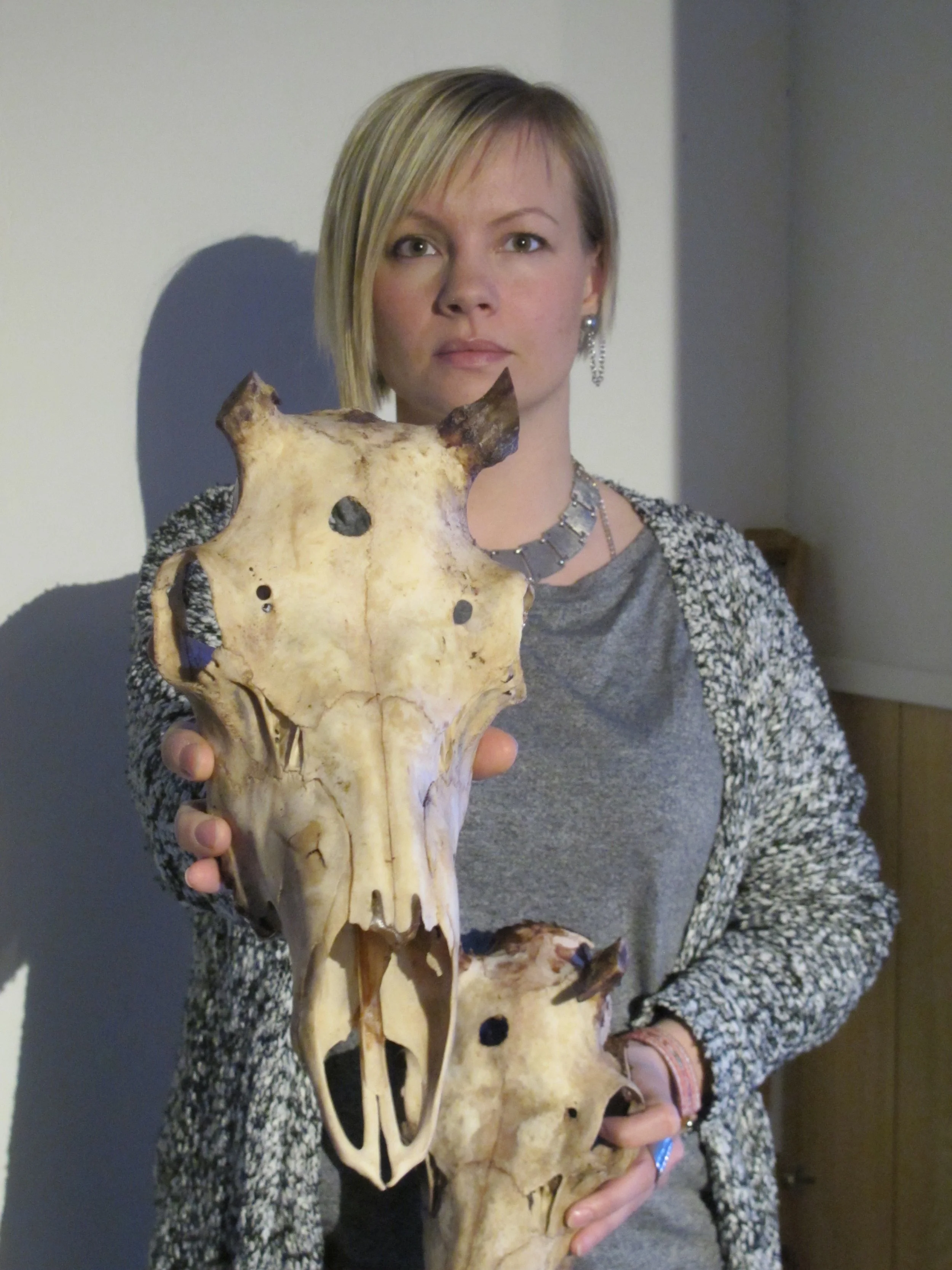 You know, they are almost holy. When we eat reindeer meat we give thanks and return the bones to the Earth wishing to be blessed with the birth of new reindeer. When I work with the reindeer heads for my art project I ask for permission, show respect and let the spirits know I do it with good intentions. Then I receive blessings. It is like a spiritual connection.